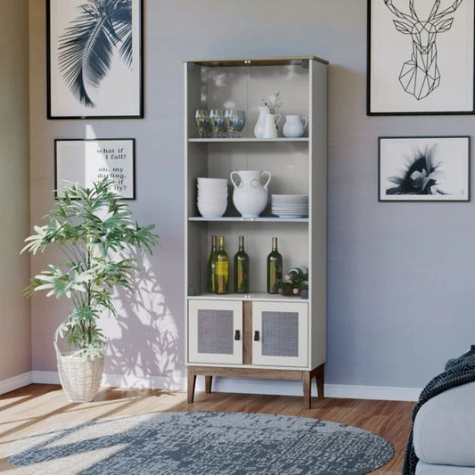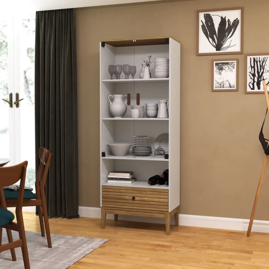 Estantería Nórdica 80 cm Con Vidrio y Cajones