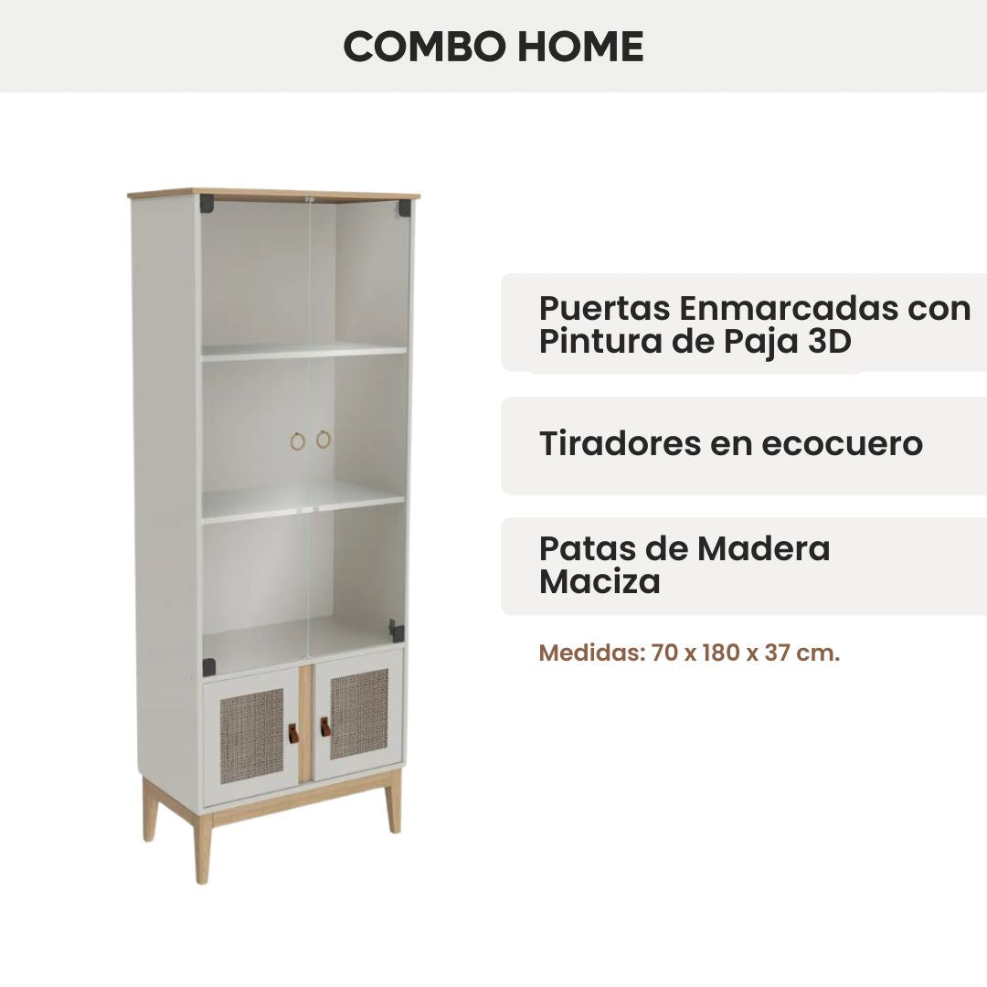 Puertas: 2 puertas de vidrio + 2 puertas con acabado paja 3D en rattan