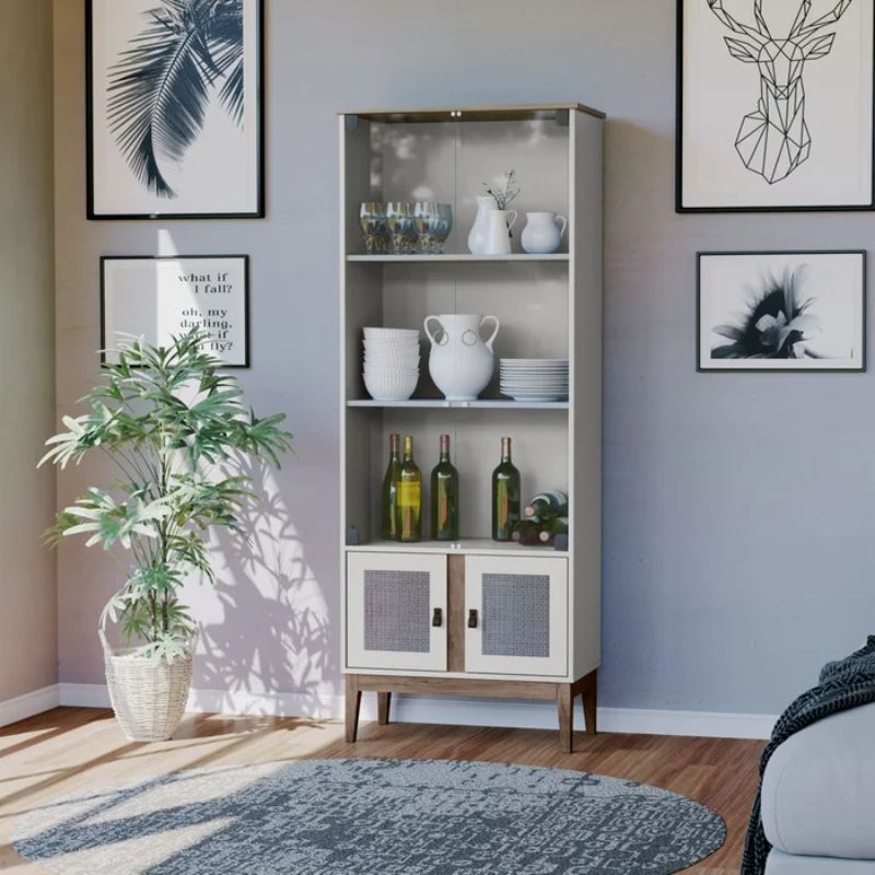 Cristalero Rattan con Puertas Vidrio