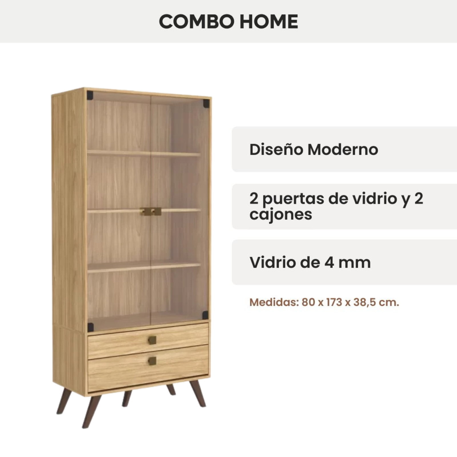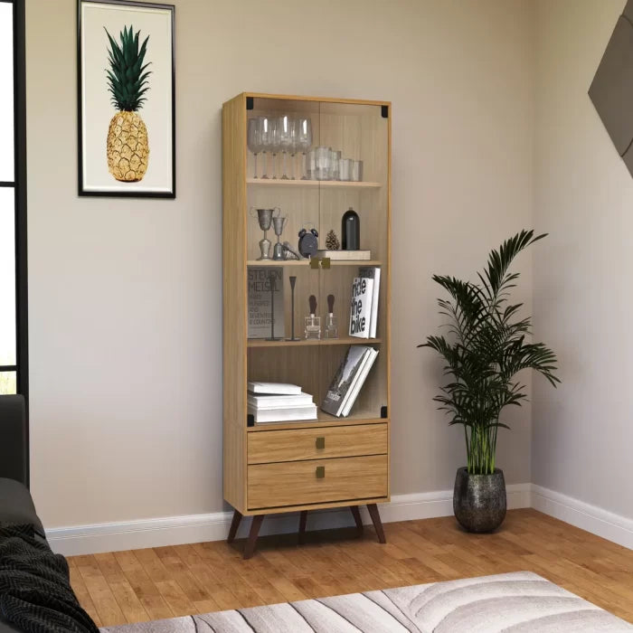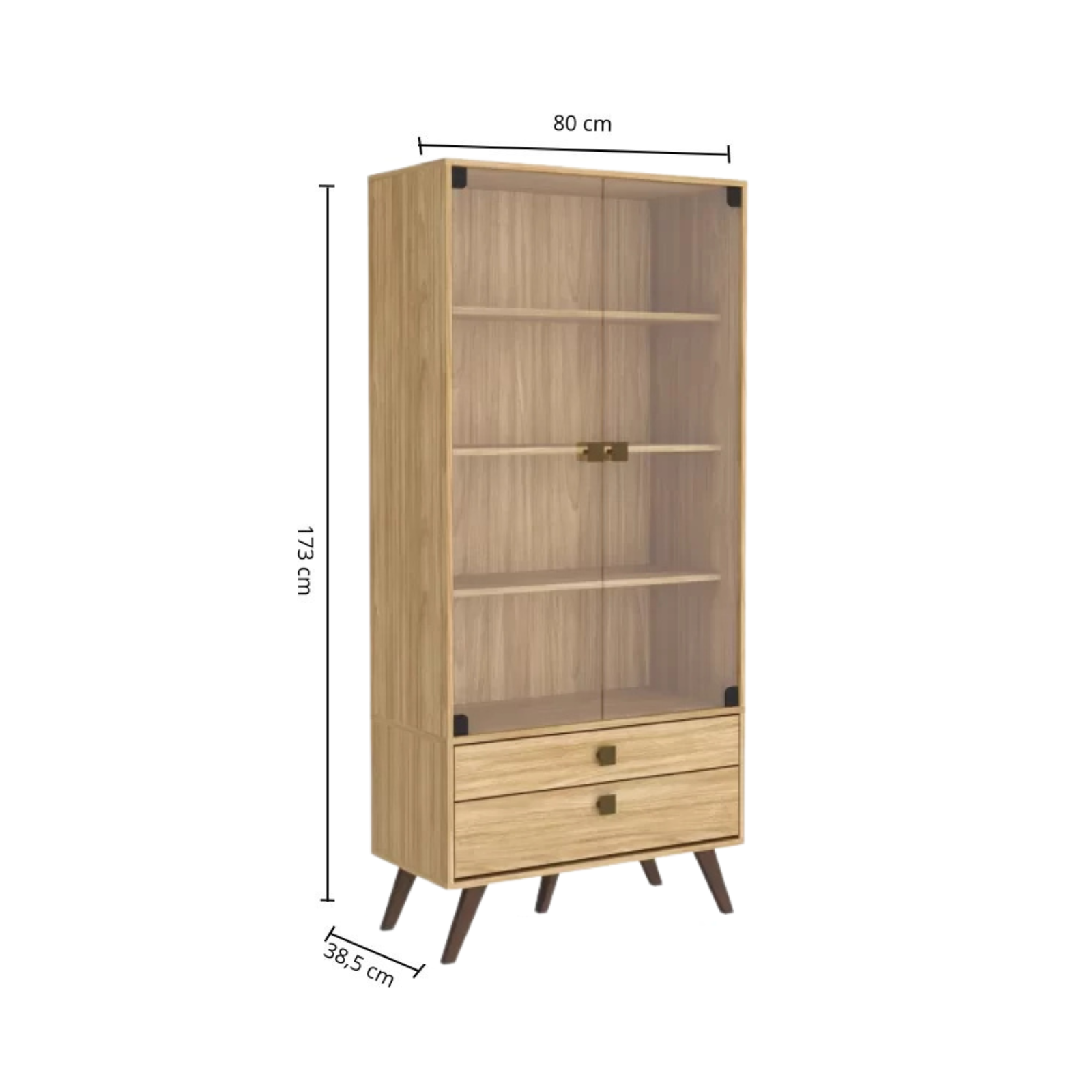 Estantería Nórdica 80 cm Con Vidrio y Cajones
