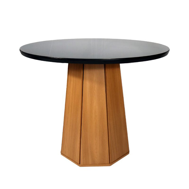 Base y tapa de MDF, un material resistente y duradero que garantiza estabilidad. La mesa está disponible en acabados blanco y negro, ofreciendo versatilidad para adaptarse a diferentes estilos de decoración.