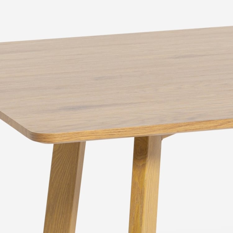 Tapa de MDF en acabado madera y patas de metal con terminación color madera. Estructura firme y resistente para el uso diario.